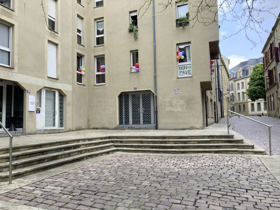 La placette rue Taison où doit être installé le futur point d’apport volontaire enterré. On peut y lire, à travers une fenêtre, le message « Non au PAVE ». Photo La SemaineUn futur point d’apport volontaire enterré doit être aménagé dans les prochains mois rue Taison, sur le modèle de celui installé place de la République. Une décision qui fait débat auprès des riverains et de certains commerçants.