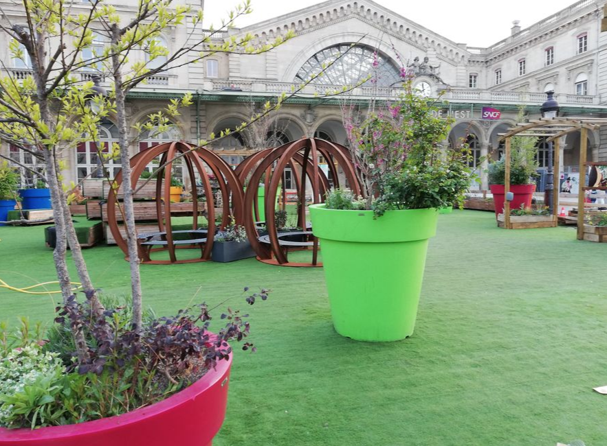 Un jardin éphémère a été aménagé par les agents de la ville de Metz sur le parvis de la gare parisienne.