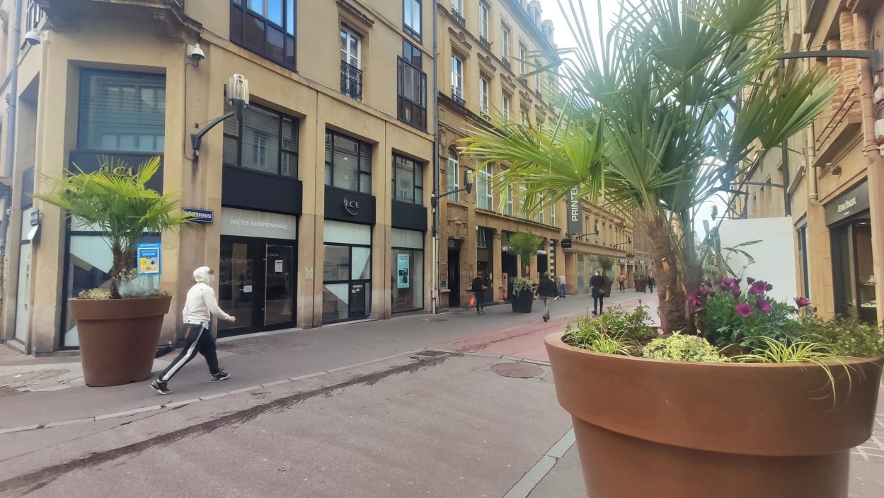 L’artère commerçante a été végétalisée ce mardi 25 mai, un peu plus d’un mois après la présentation par la municipalité de sa stratégie de réenchantement de l’hypercentre messin.