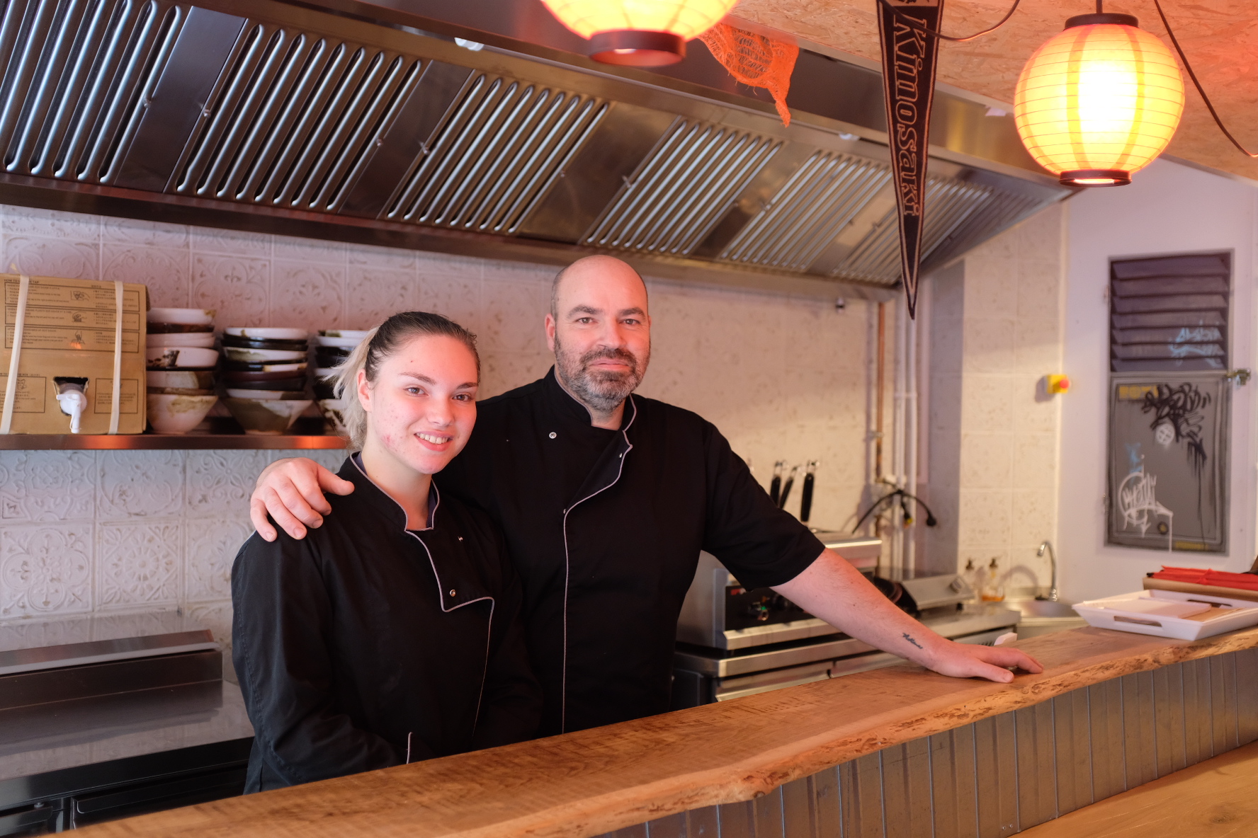 Chez Kyôdaï Ramen, ouvert depuis le 3 juillet au 9 rue Sainte-Marie, on ne plaisante pas avec le goût et les traditions. Ici, le ramen, plat le plus consommé du pays, est roi. Laurent Suk, le propriétaire multicasquette du restaurant, a passé plus d’un an et demi à rénover le local et surtout à trouver la recette parfaite pour ses bouillons, misos, et autre dashi (une infusion de légumes, viandes et poissons). De longs mois de recherche donc, « et de kilos en trop » sourit Émilie, sa belle-fille et assistante en salle et en cuisine.