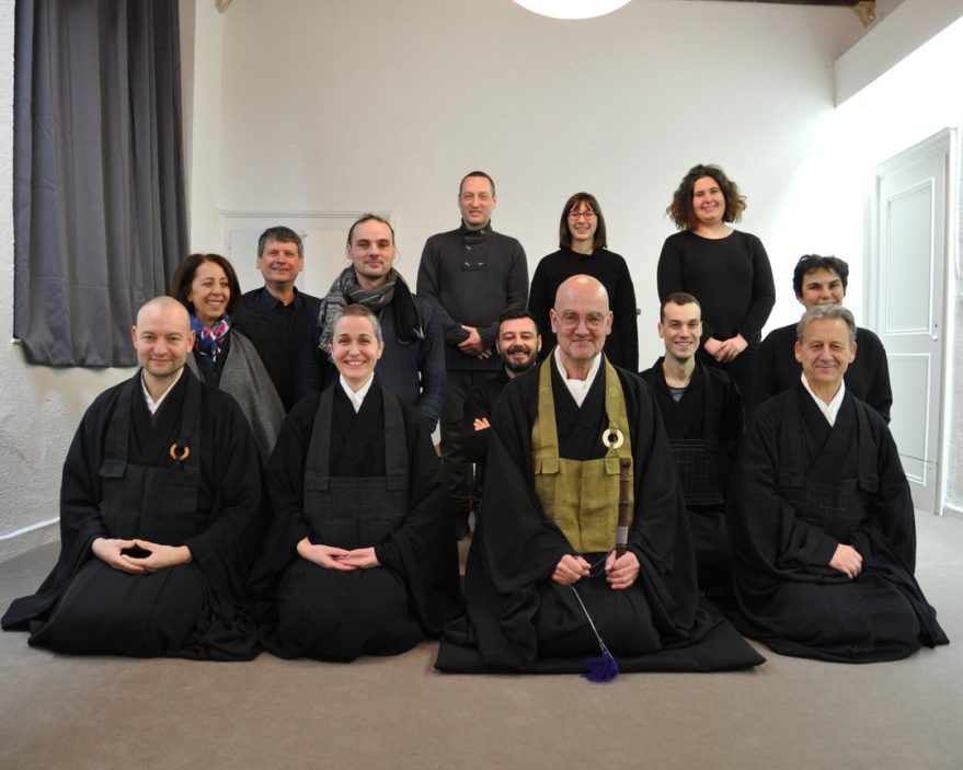 Maître Olivier Reigen Wang Genh, entouré des membres de l’association du centre de méditation zen de Metz. Photo FacebookMaître Olivier Reigen Wang Genh, abbé du temple zen bouddhiste de Weiterwiller, sera au Mercure Hôtel de Metz jeudi 8 juin.