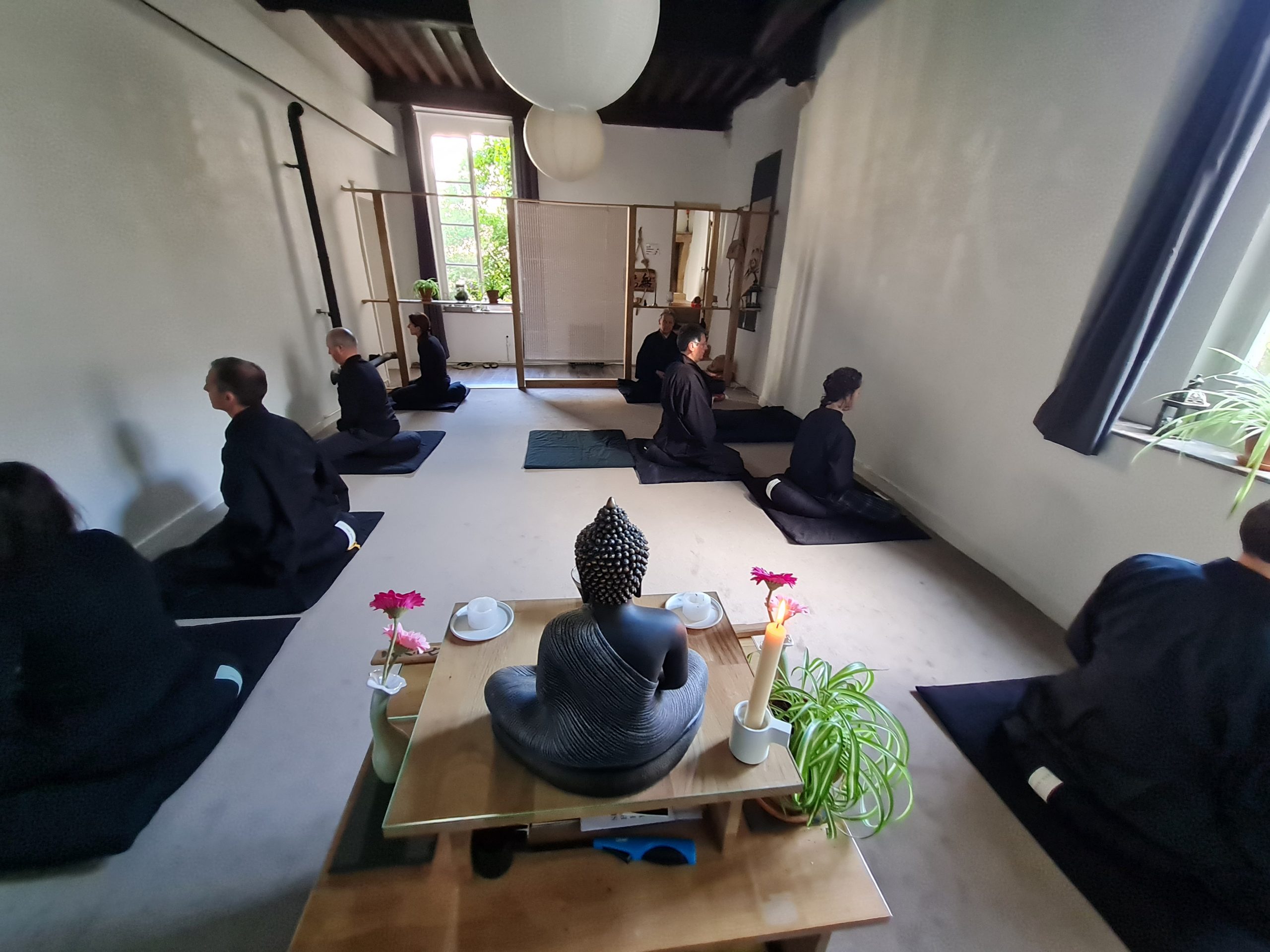 Pas question donc de confondre les initiations proposées par le Dojo avec les méditations guidées qui abondent sur Internet sous forme de vidéos et de podcasts. Une voix douce sur fond de musique calme ne suffit pas. « Il s’agit ici de relaxation, utile à un moment donné pour certaines personnes, mais qui ne s’inscrit pas dans la durée comme le zazen. La méditation assise est au cœur du bouddhisme zen et se pratique quotidiennement. Une tradition ancestrale, ça ne s’improvise pas », ajoute Maître Wang-Genh. Surtout, la méditation zen s’effectue en groupe, entouré d’autres personnes guidées par quelqu’un de plus expérimenté. « Être accompagné permet de ne pas se tromper et d’éviter de rentrer dans un chemin trop personnel… Ce qui serait tout le contraire de ce qu’on essaie de faire. »