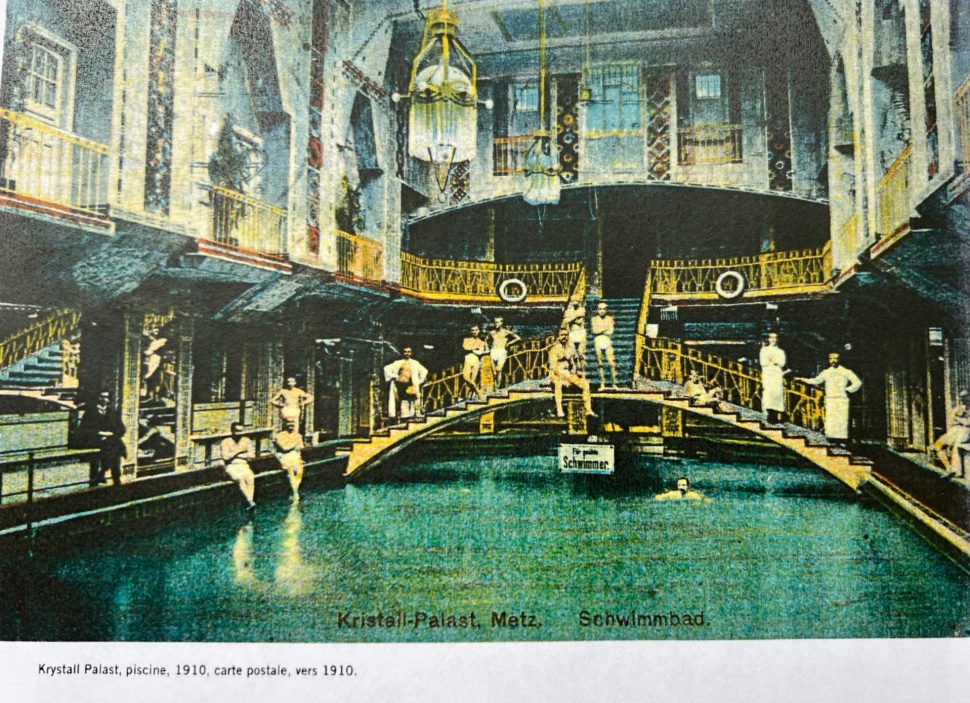 L’intérieur de l’établissement est tout aussi prestigieux et raffiné. La piscine est installée à l’étage… ce qui encore une fois implique des inquiétudes pour la municipalité. « Le jour où elle a été mise en eau, le quartier a été entièrement bouclé et les pompiers comme la police étaient présents sur place », explique Patrick Thil, l’adjoint en charge de la culture de la Ville de Metz. Cette anecdote, découverte dans les archives, l’amuse beaucoup. Du cristal de bohème, Johann Balassa en applique aussi sur les bords de la piscine souhaitant mettre en avant la transparence de l’eau dans sa décoration. Des jeux de lumières, de fausses grottes à la mode de l’époque, du champagne, des caves à vins et à bières, un restaurant type fast-food avant-gardiste, des boutiques, des glaciers, des cafés-concerts… C’est à l’époque le Palais de tous les plaisirs. Il est inauguré le 19 février 1910 après plusieurs années de galère, et rencontre un succès extraordinaire avec des dizaines de milliers de personnes dans la rue. Une réussite pour le moins éphémère, puisque le 27 avril, le Palais de Cristal est déjà en faillite. « Les recettes ne suffisaient plus à couvrir les charges de l’établissement. C’était le bâtiment le plus cher de la ville, il avait coûté 1,2 million de Mark », souligne Patrick Thil. Les grandes heures du Palais de Cristal sont terminées.