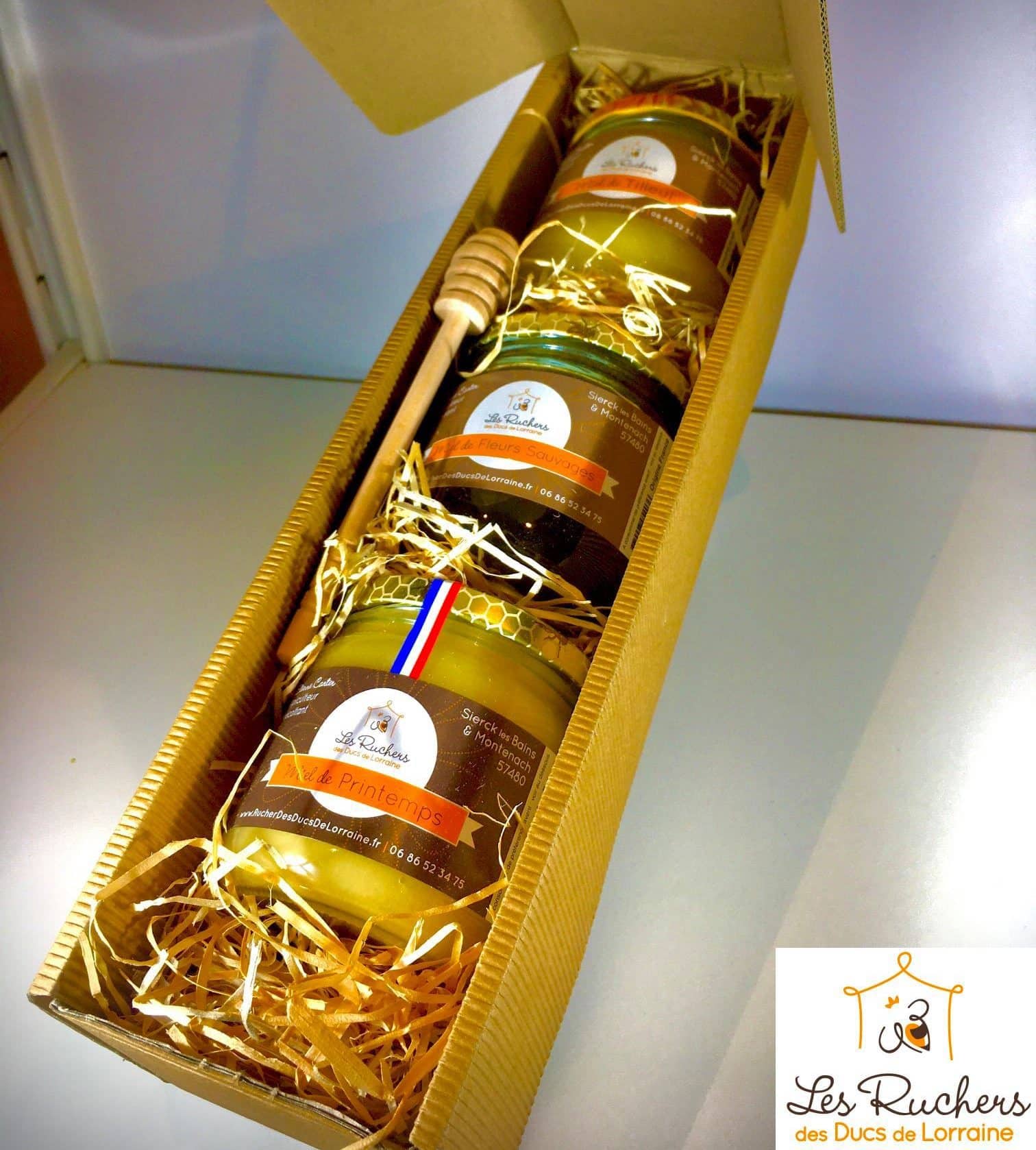 Les Ruchers des Ducs de Lorraine proposent « une large gamme de miels mais aussi d’autres produits » issus de leurs abeilles. C’est en 1989 que l’histoire a commencé lorsque Jean-Jacques Cartier, créateur de l’exploitation, reçoit sa première ruche. Tombé dans la potion magique, il va développer sa passion pour l’apiculture et va créer « le Rucher des Ducs de Lorraine », au singulier, en 2008. Quelques années plus tard, son fils Etienne Cartier imitera son père et fondera « Les Ruchers des Ducs de Lorraine », le nom actuel de la structure. Apiculteurs récoltants basés à Sierck-les-Bains, Jacques et Etienne fabriquent donc différents miels (acacia, forêt, tilleul). Le miel peut également être transformé pour la fabrication de pain d’épices et de nougat. Jacques et Etienne Cartier travaillent avec près de 400 ruches, dans le respect des abeilles et de l’environnement.