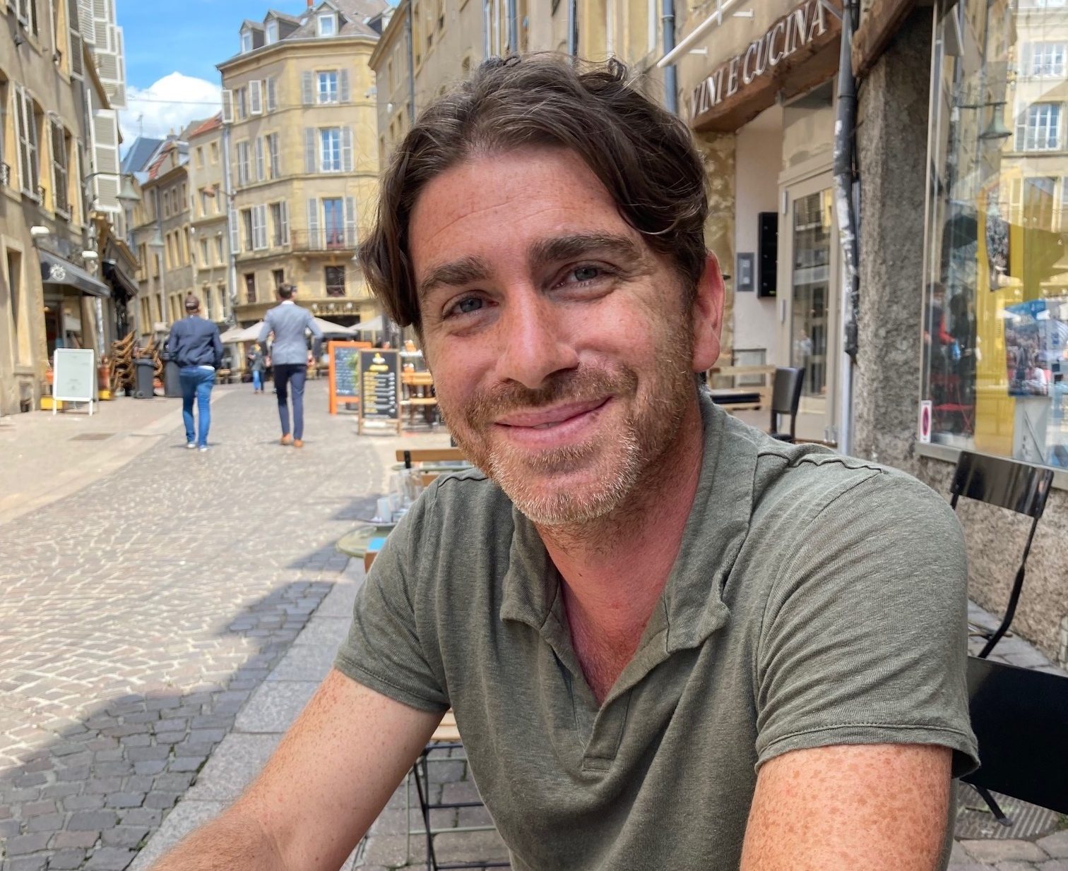« Je suis de cette génération qui a eu la chance de se rendre au stade très tôt. Jusqu’à l’âge de 12 ans, les places étaient gratuites. Mon père assistait aux matches à Saint-Symphorien alors il nous emmenait, mon frère aîné et moi. En ce temps-là, les joueurs s’entraînaient sur le terrain rouge situé à l’arrière du stade, ils étaient accessibles, on pouvait aller leur parler, leur demander un autographe… Les premiers souvenirs se fabriquent là. Avec mon frère, on jouait partout et tout le temps. La maison, c’était un terrain de jeu permanent. Au risque de rendre folle ma mère ! On renversait ses fleurs, on cassait ses vases… Deux clubs de cœur : Metz et Marseille, dont c’était la grande époque européenne durant mon enfance. J’avais reçu le maillot en guise de cadeau d’anniversaire. Mon tout premier maillot. Metz, j’y suis abonné depuis quelques années. Le stade est devenu l’endroit où je retrouve mes potes. Les années ont passé, les vies de famille se sont faites ; pour certains, je ne les vois plus que là… Mon amour du foot est aujourd’hui différent, il y en a chaque jour à la télé, je sélectionne mes matches, je tâche de garder le côté rare que j’ai connu aux débuts. À côté de ça, j’aime les livres, je me suis construit une culture. Faut pas croire que c’est qu’un truc de beauf. En 2016, j’ai fait quelques matches de l’Euro en France : avant ou après les rencontres, j’y ai rencontré des personnes formidables ! »