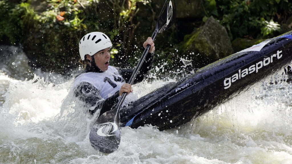 Le kayak, donc, à ne pas confondre avec le canoë. Ici, les compétiteurs pagaient de part et d’autre de leur « bateau », et non d’un seul côté, dans un bain à remous qui contrarie leur cheminement. Ils ont à franchir le plus rapidement possible des portes vertes dans le sens du courant, des portes rouges en remontant celui-ci, chaque « touche » sur l’une de ces fameuses portes valant pénalité. Il faut des bras musclés et un vrai sens de la navigation pour venir à bout de pareil slalom dans un chrono canon. Il y en a même qui se retournent et boivent la tasse de temps à autre…
