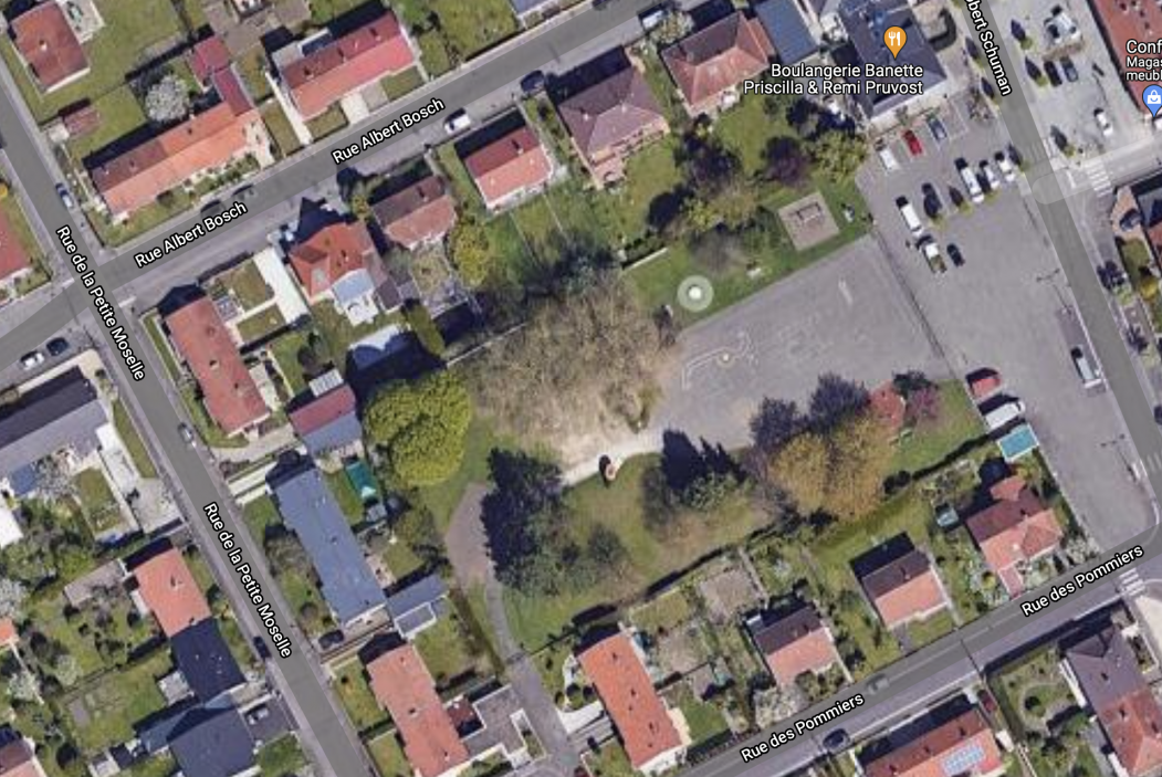 Le square Robert Schuman. Image satellite google mapLa Ville de Montigny-lès-Metz a invité sa population à se prononcer sur les chantiers à privilégier.