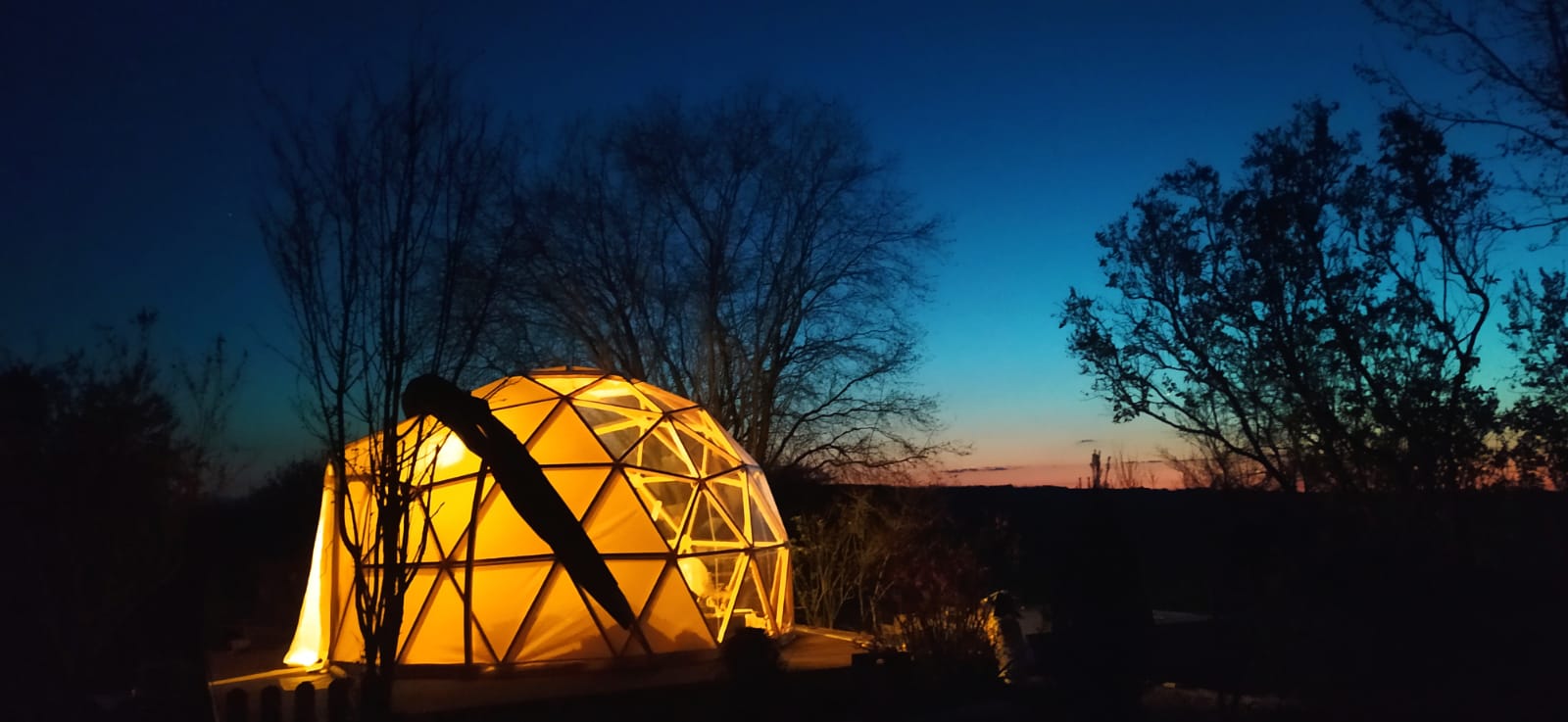 Situé dans la commune de Bérig-Vintrange, le logement peut prendre la forme de chambres d’hôtes classiques. Mais si certains préfèrent vivre une expérience plus insolite, ils peuvent choisir le dôme géodésique pour passer une nuit en pleine nature, sous les étoiles.