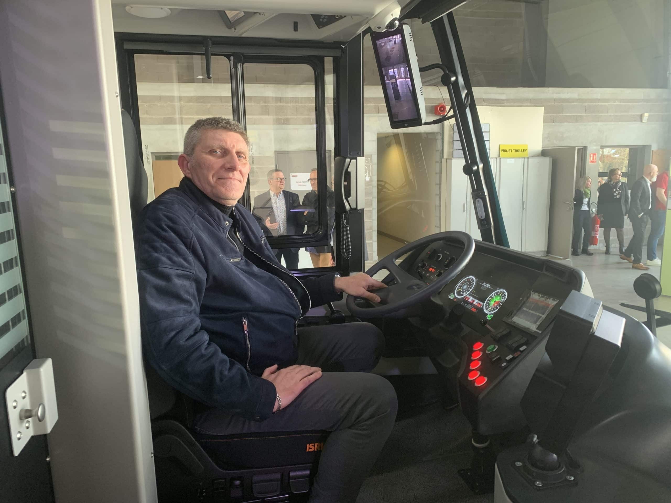 Comme Olivier Thouvenin, cinq chauffeurs ont été déjà été formés pour conduire le nouveau trolley jusqu’à un un quai provisoire où les Grands Nancéiens pourront le découvrir dès la fin de la semaine. Photo La Semaine
