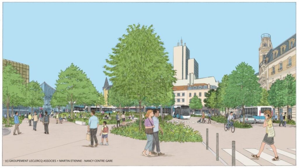 La gare routière s’étendra sur la moitié de la place actuelle ainsi qu’à l’arrière du Centre Prouvé. Enfin, le boulevard Joffre sera mis en sens unique pour les voitures, avec deux voies réservées aux bus et une aux vélos et trottinettes. Des cheminements et des connexions avec les places Charles III, des Vosges et de la Croix de Bourgogne sont également au programme. La livraison de cette nouvelle place est attendue en 2026. Dernière étape, mais qui ne devrait pas perturber la circulation, la construction d’immeubles notamment en face du lycée Cyfflé, sur une parcelle qui avait été gelée par la Métropole. Cet ensemble de logements doit sortir de terre à l’horizon 2030.