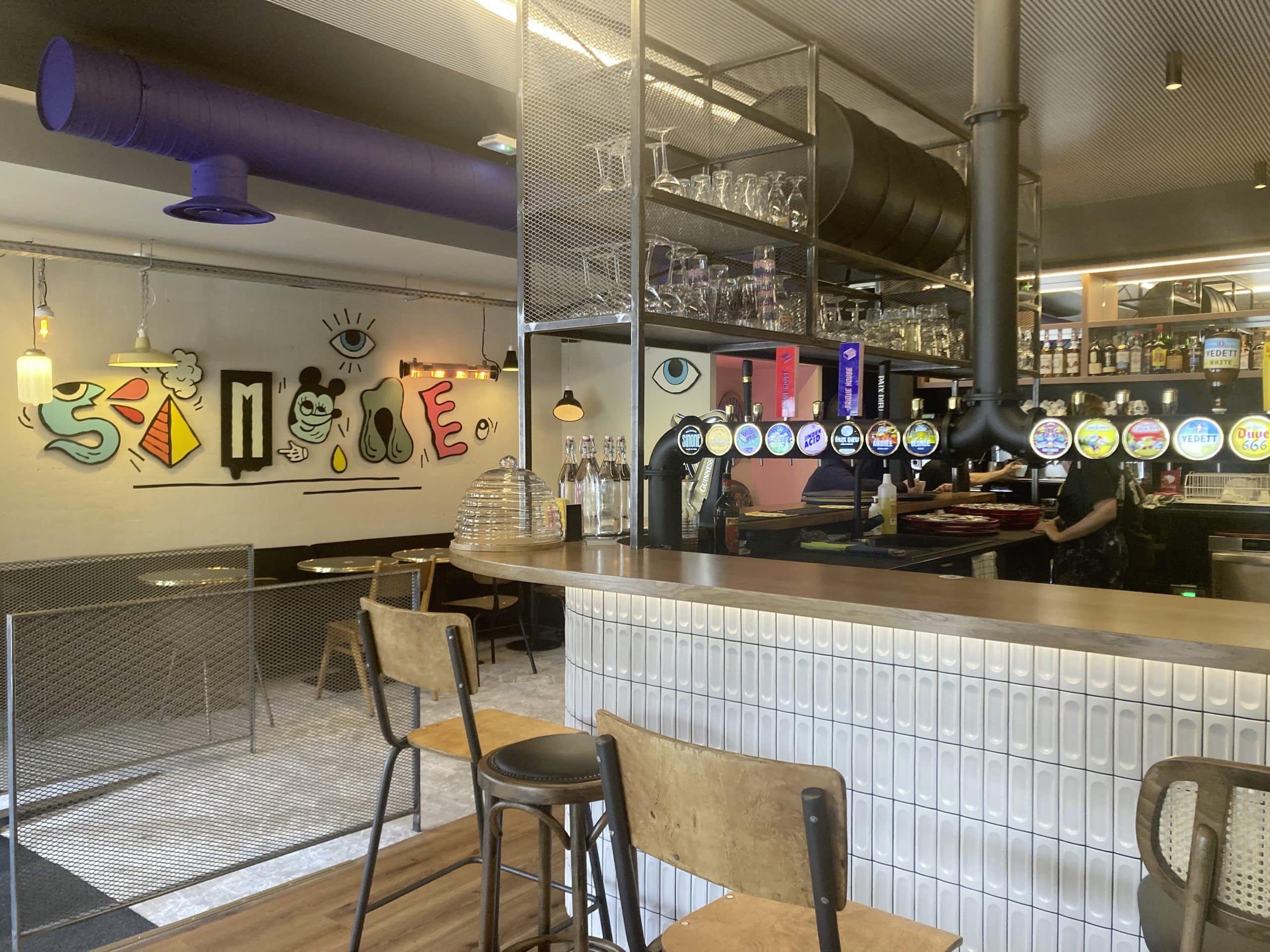 Un restaurant ? Un bar ? Plutôt les deux. Installée place Simone Veil, la bien nommée Brasserie Simone vient tout juste d’ouvrir ses portes. Installé à la place de l’ancien restaurant L’Olivier et de la crêperie La tête à l’envers, l’établissement se présente comme un lieu hybride. Ouvert en continu sept jours sur sept, Brasserie Simone propose une carte déjeuner le midi, à base de produits locaux comme de la truite et des fromages des Vosges, de la viande provenant d’éleveurs locaux d’éleveurs « ou de race »… Ainsi que des pizzas composées de produits italiens (excepté pour la quatre fromages, aux forts accents lorrains). À la barre, quatre associés : Matthieu, Nicolas ainsi que Thibaut et Jérôme, tous deux déjà à la tête de plusieurs établissements nancéiens (Le Mouton Électrique, Papa Joe, Suzette & Gino). Quatre associés et avant tout amis. « Ça fait une vingtaine d’années qu’on se connaît. On avait envie de faire quelque chose ensemble. Avoir un établissement hybride comme celui-ci, c’est une première pour nous tous », explique Matthieu.