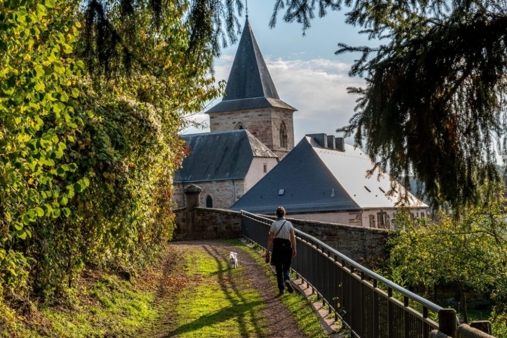 Jean-Marie Guzik sait se montrer persuasif quand il nous décrit la beauté de ce village médiéval, suspendu sur une colline qui domine la vallée de la Rosselle. Hombourg-Haut possède la majesté de ces lieux qui s’élèvent, suspendus entre ciel et terre. Si Sierck accroche l’œil par son château, c’est l’église de Hombourg qui se charge d’appâter le visiteur. La collégiale Sainte-Étienne est classée aux Monuments historiques. Elle domine et regarde le village, une rangée de maisons alignées à ses pieds. Hombourg-Haut, c’est aussi la Chapelle Saint-Clément, également classée aux Monuments historiques.