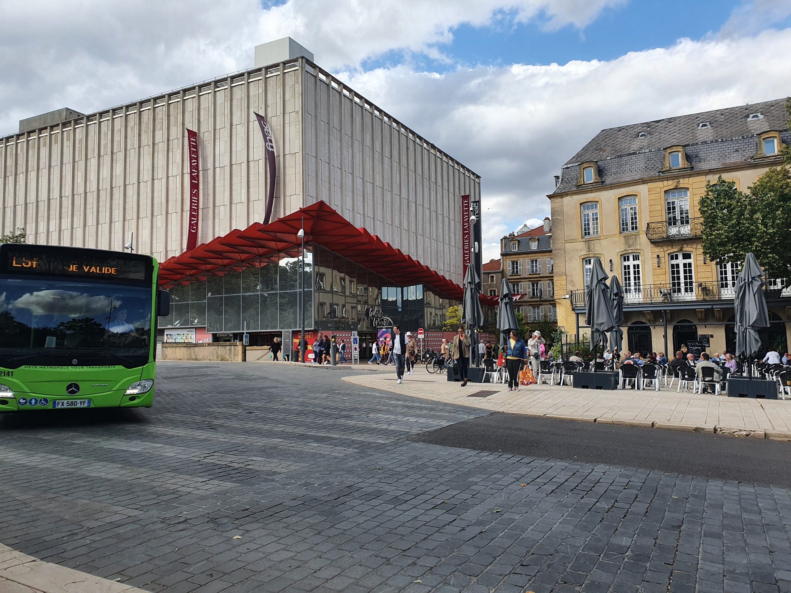 Raconter une place n’est pas toujours simple. Prenez celle de la République : ce jeudi après-midi, elle paraît bien vide. Presque insipide alors même qu’elle symbolise le cœur battant de Metz. Celui autour duquel le reste de la partition prend forme. Culture, commerce, institution et même sport, elle crée des passerelles entre ces différents mondes abritant l’un des joyaux militaires et artistiques de la ville : l’Arsenal. Une place vide où tout le monde se presse. C’est tout le paradoxe du lieu. Elle est constamment traversée, de part en part, de haut en bas. Des va-et-vient, des pas qui accélèrent et finissent en petites foulées… Avec au loin un flot discontinu de couleurs. Du bleu, du rose, du vert, du orange… Le défilé des bus, c’est aussi ça la République. Un point névralgique du réseau de transports en commun de Metz. Tout se rejoint ici.