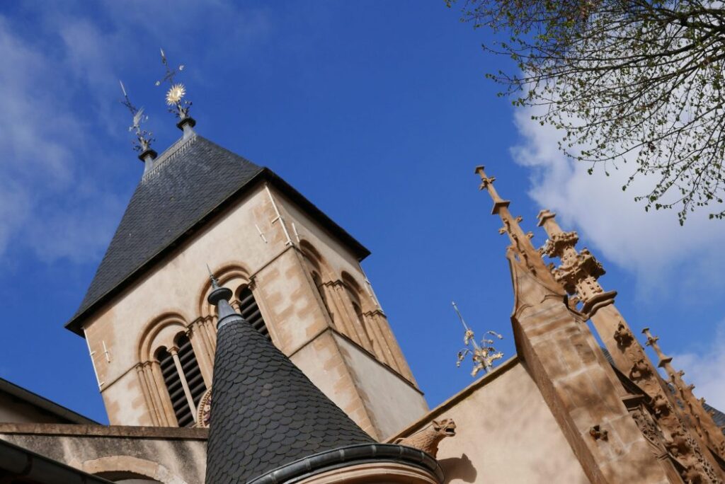 Le clocher de Saint Eucaire à Metz. Photo La Semaine« À partir du 3 juin, la rue des Allemands et ses abords seront piétonnisés les samedis de 11 à 23 h. » Une décision destinée, nous dit le document municipal, à « favoriser l’attractivité », à « affirmer le changement d’image au bénéfice des habitants » et à créer « une continuité piétonne de la cathédrale à la porte des Allemands ». Et crac, sur le plan, la flèche piétonne traverse le quartier.