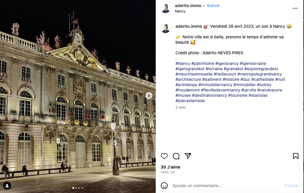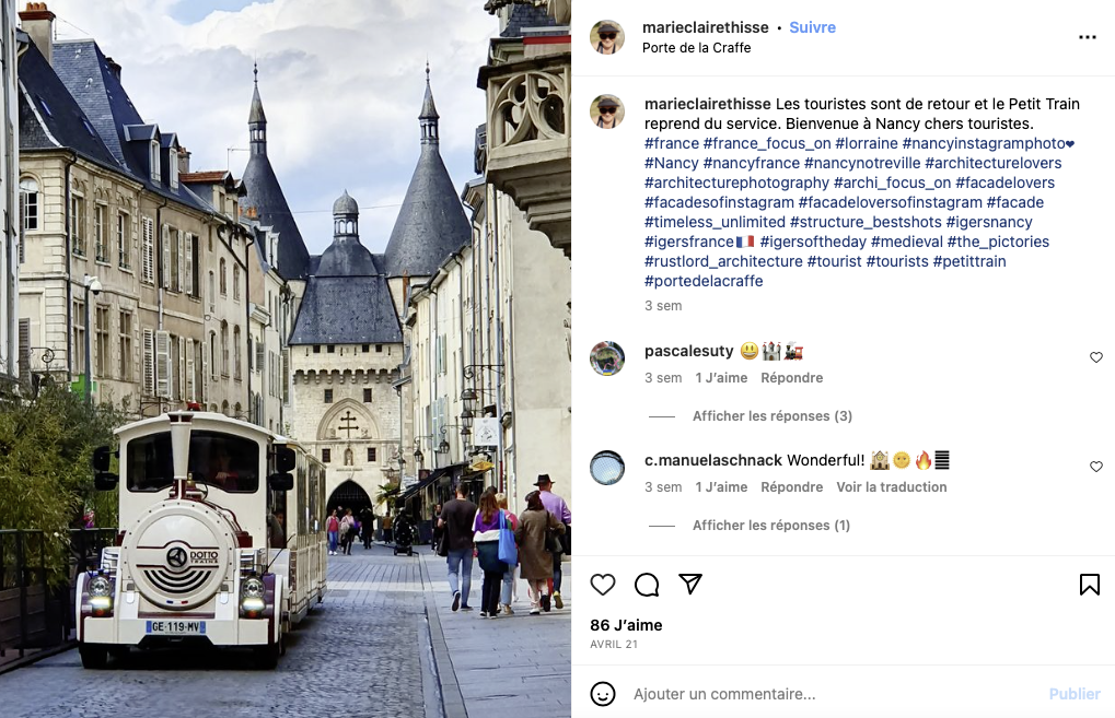 Selfies en amoureux, de nuit, en famille, entre collaborateurs ou encore déjeuners en terrasse dans des quartiers sympas, de nombreux lieux à Nancy sont postés sur les réseaux sociaux. Quels sont les endroits qui suscitent de l’intérêt auprès des instagrammeurs par exemple ? La rédaction a sélectionné quelques clichés touristiques.