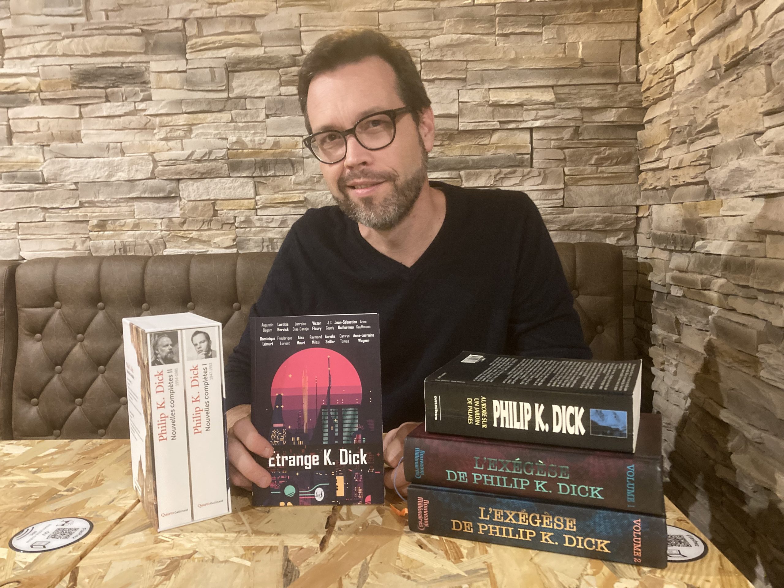 Premier festival des littératures de genre en Lorraine-Nord, Étrange-Grande a ouvert les portes de l’imaginaire les 16 et 17 septembre derniers dans la commune d’Hettange-Grande. Polars, SF, fantasy, horreur et fantastique ont été mis à l’honneur pour une première édition dédiée au maître de la science-fiction. Philippe Hupp était invité dans le cadre d’une table ronde pour évoquer le souvenir de Philip K. Dick, aux côtés d’autres personnalités l’ayant connu. Par la suite, un recueil de nouvelles publié par les éditions Livr’S, Étrange K. Dick, lui a été dédié, mêlant les plumes d’auteurs et d’autrices connus, comme Jean-Sébastien Guillermou, et celles des participants aux ateliers d’écriture organisés dans le cadre du festival. « Philip K. Dick a marqué mon adolescence, confie l’un des organisateurs, Johann Girost. Ce qui m’a scotché, c’est qu’il était différent des autres auteurs de par les thématiques qu’il abordait. Il pose dès les années 1950-1960 des questions très profondes et visionnaires comme : quelle est la limite de l’humain ? Entre le réel et le virtuel ? C’est ça qui est très fort. »