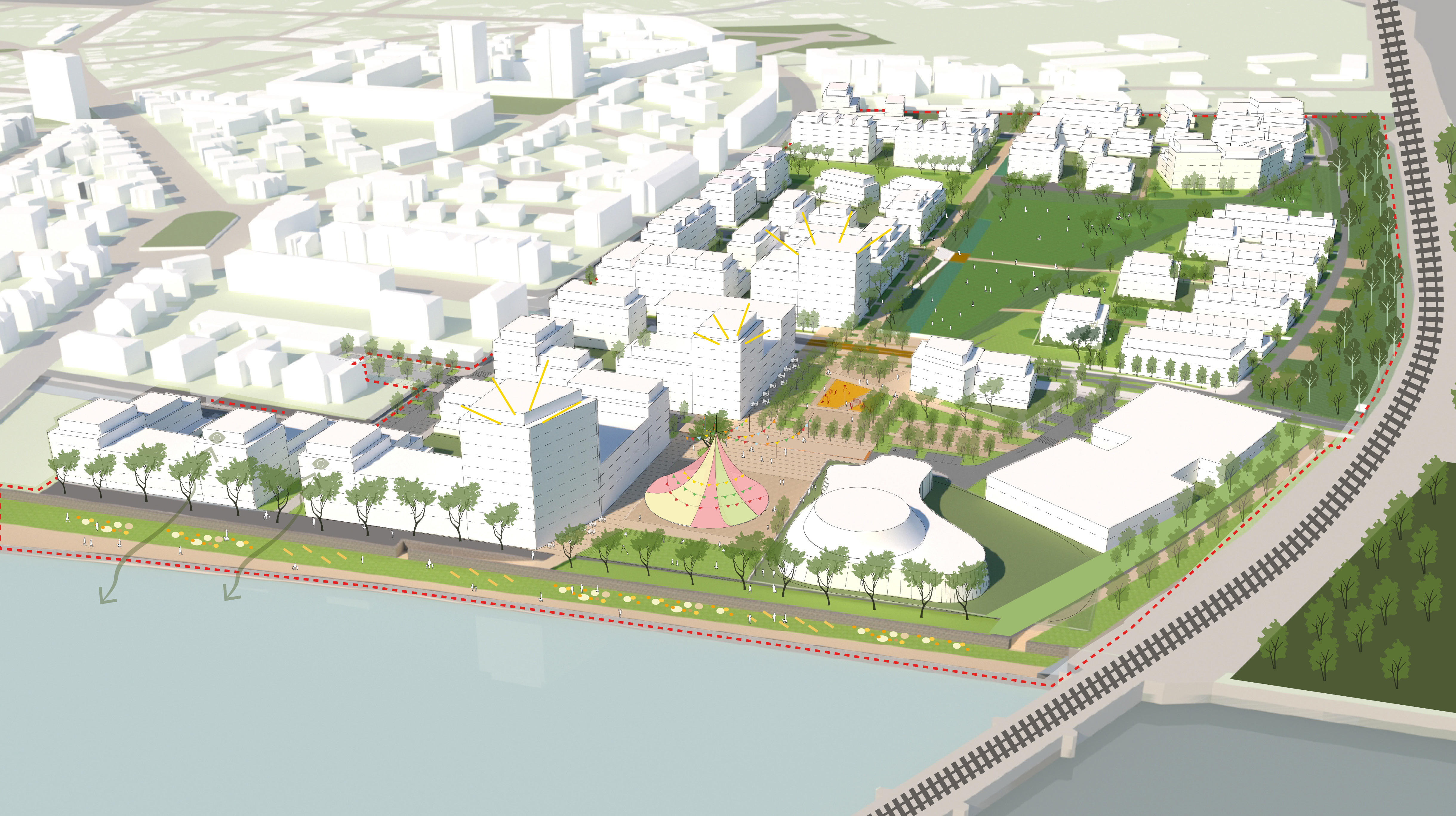 « Nous serons uniquement sur du logement collectif », précise toutefois Olivier Mitzner, le directeur de l’urbanisme. En effet, « au regard du passif de ce site, il nous a été déconseillé de proposer des logements individuels », détaille-t-il. Concernant l’esthétisme des bâtiments, le dossier suit son cours. La mise en concurrence a permis de retenir trois promoteurs et trois architectes qui présenteront leurs projets au jury ce mois-ci. D’actualité, la question des performances thermiques se pose elle aussi. Encore plus quand on parle d’écoquartier. Dans l’attente des propositions des candidats retenus, Roger Schreiber souligne que les bâtiments, au minimum aux normes, pourraient être envisagés « comme passifs, voire à énergie positive ». Cette écoconception de la Rive gauche induit une bonne gestion de la ressource en eau, notamment pluviale. Un dispositif devrait être mis en place pour alimenter les végétaux du parc.