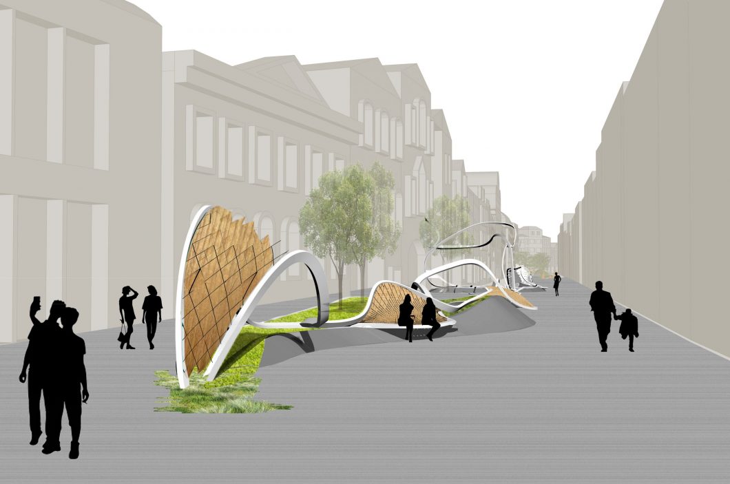Dans ses courbes et ses plis s’inséreront des bancs et assises, des brumisateurs pour les périodes de fortes chaleurs, des spots lumineux et des haut-parleurs. « On y compte beaucoup d’éléments différents qui sont autant de propositions pour de nouveaux usages de l’espace public. Les promeneurs y trouveront des espaces de pause mais aussi d’autres plus animés. Cela crée un rythme qui accompagne la marche. » Ils pourront s’y reposer, s’y rafraîchir ou encore écouter la légende du Graoully dans une « alcôve sonore ». « Ce projet n’a pas seulement pour objectif de redynamiser la vie commerçante. Nous voulons que les riverains et passants s’en emparent comme d’un support d’activité, s’y promènent comme dans un jardin urbain. »