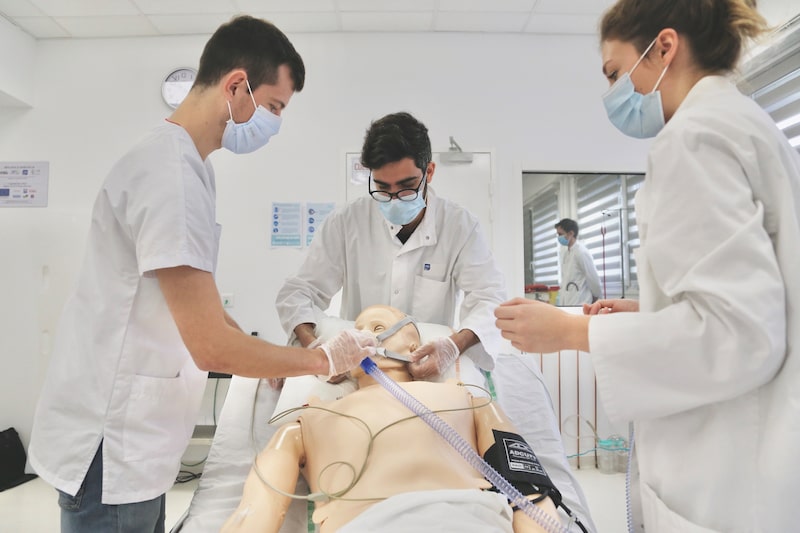La majeure partie de la formation d’un médecin et d’une infirmière se fait « au lit du patient », avec un tutorat assuré par des professionnels diplômés. Pour le CHRU, moteur dans ce domaine, une formation initiale de qualité sous-entend le suivi de stages professionnalisants et dynamiques. Confronté à la pénurie de personnels soignants, l’établissement se mobilise pour former davantage dans des conditions optimales. « Afin de les fidéliser, nous accompagnons les élèves infirmiers et aménageons leur premier contact avec l’hôpital », relate Arnaud Vanneste, qui confie aussi pousser à l’universitarisation des infirmiers.Endossant par ailleurs le rôle d’usine à formations, le CHRU construit ses propres cursus. « Plusieurs postes n’ayant aucun équivalent sur le marché du travail, nous créons des formations sur mesure, pour disposer d’un vivier et de professionnels de qualité. »Tourné vers l’apprentissage depuis 2018, l’établissement accueille aujourd’hui une cinquantaine d’apprentis sur des spécialités très différentes, des soins généraux à l’intelligence artificielle en passant par le web développement. Élaborée en direction de ses professionnels de santé, l’offre de formation continue du CHRU vise à gagner en qualité de soins, en bien-être au travail et en satisfaction patients. Pour Marc Debouverie : « Les médecins et toutes les professions paramédicales doivent continuer à se former tout au long de leur carrière. Comme pour la formation initiale, le CHRU a un rôle essentiel dans le cadre de la formation continue, en lien avec l’Université de Lorraine. »