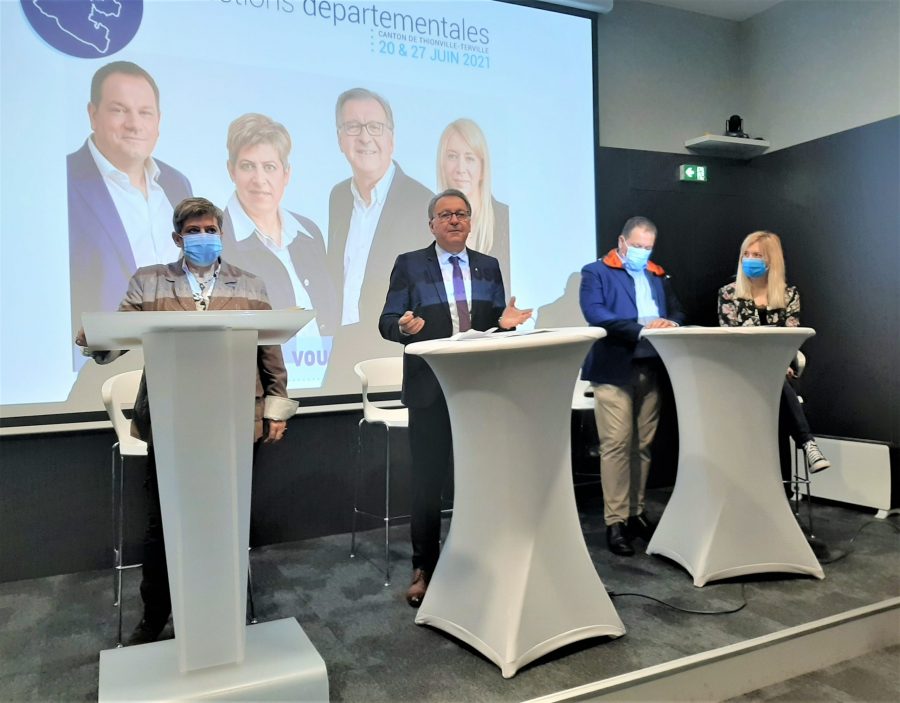 « On dit de moi que je suis empathique et que je sais écouter », a expliqué Brigitte Schneider qui entend « défendre les valeurs du territoire au sein du Département ». Brigitte Schneider, 53 ans, cadre bancaire au Luxembourg et élue au conseil municipal de Thionville, est la candidate titulaire aux côtés de Pierre Cuny. L’équipe « remplaçante » se compose d’Aurélie Lereboulet et d’Edouard Cornot. À 42 ans, Aurélie Lereboulet, également thionvilloise, apporte son expertise de professionnelle de santé. Infirmière, elle travaille depuis plus de 16 ans au Luxembourg, où elle est responsable du département psychiatrique au Centre Hospitalier Émile Mayrisch. Elle a récemment rejoint l’équipe municipale. Édouard Colnot apporte une touche tervilloise au quatuor. Chef d’entreprise, il réside à Terville depuis 42 ans. « Le conseil départemental n’a pas à proprement parler de compétences sur le plan économique mais l’on voit, notamment au travers de la démarche MOSL qu’il a un rôle important en matière d’attractivité. Et c’est à mes yeux très important », a souligné Edouard Colnot.