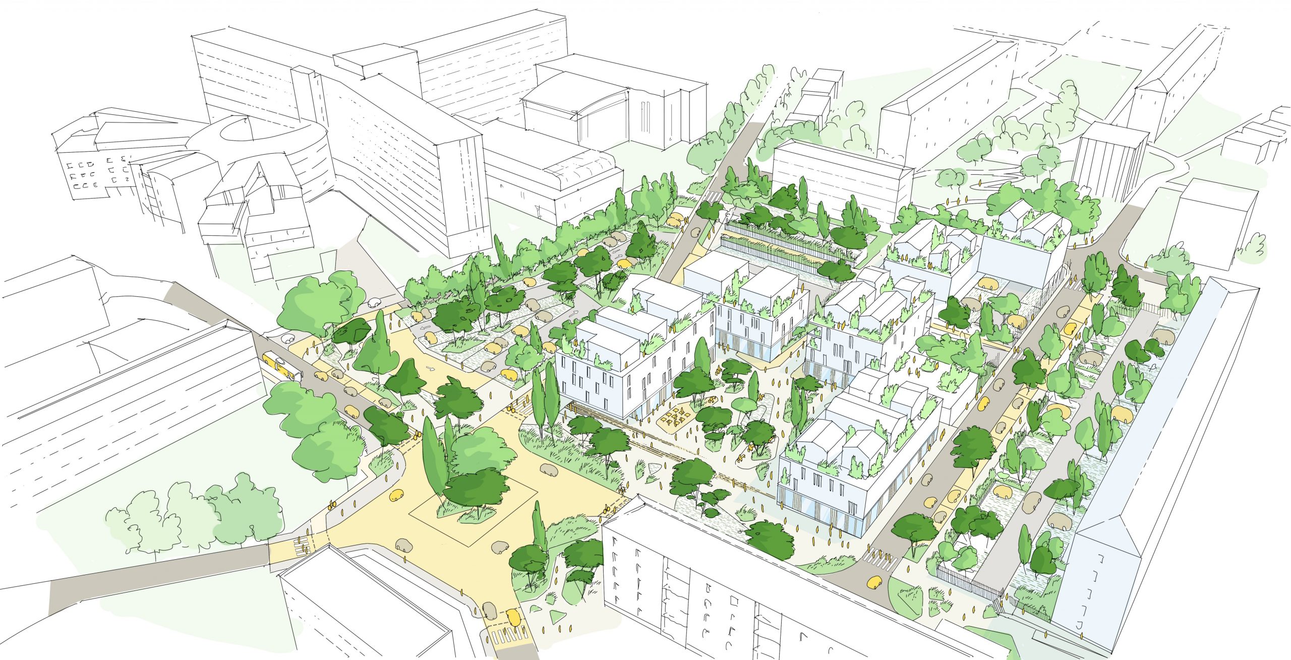 La Ville projette de rendre le quartier plus agréable à vivre avec l’aménagement d’espaces verts et plus de mixité sociale. Photo Bureau d’étude LA/BA