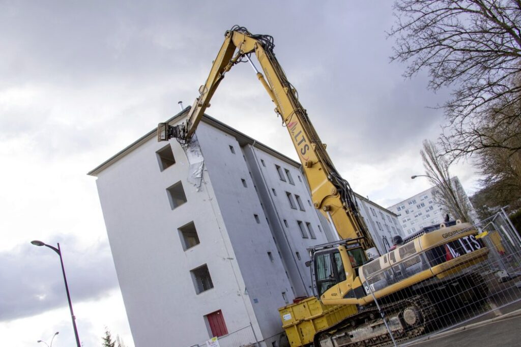 Après la tour Chevreuil, installée sur les hauteurs du quartier Côte-des-Roses Bel-Air, le 27 novembre dernier, c’est au tour de la barre Bécasse de s’effacer doucement mais sûrement du paysage. Les travaux de démolition ont débuté jeudi 1er février à 14 h. Et si la tour Chevreuil n’existe plus, la barre Caille/Bécasse conservera une partie de ses logements (côté Caille).