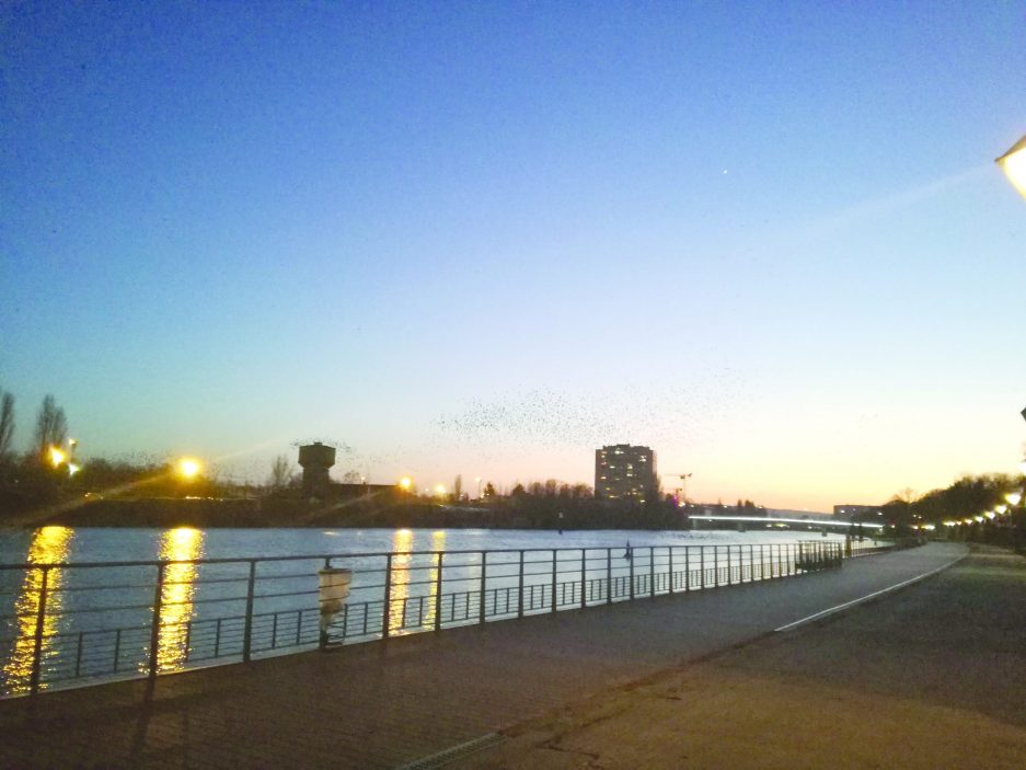 Les nuées d’étourneaux au crépuscule sur la Moselle, à Thionville. Photo La SemaineCertains volatiles sont assez habitués à l’homme pour vivre dans les villes, où ils trouvent refuge et nourriture. La prolifération des étourneaux, pigeons et corvidés entraîne des nuisances sonores, mais aussi sur le plan de l’hygiène et de la salubrité, contraignant la Ville à prendre des mesures.