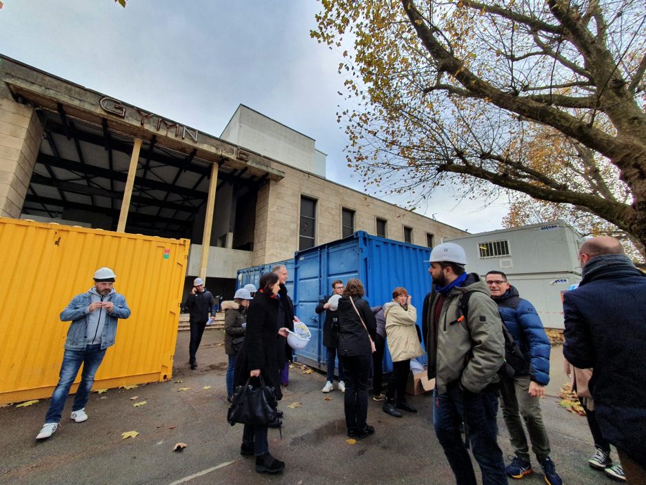 Commençons par l’entrée principale, celle qui fut également « l’entrée historique » du bâtiment et qui en conserve quelques stigmates… Certaines lettres de l’inscription « gymnase » sont encore en place. Elles rappellent l’équipement construit en 1960. Un pas dans le passé avant de se projeter vers le futur, dans le complexe Jean-Burger qui verra le jour à la fin de l’année 2023.