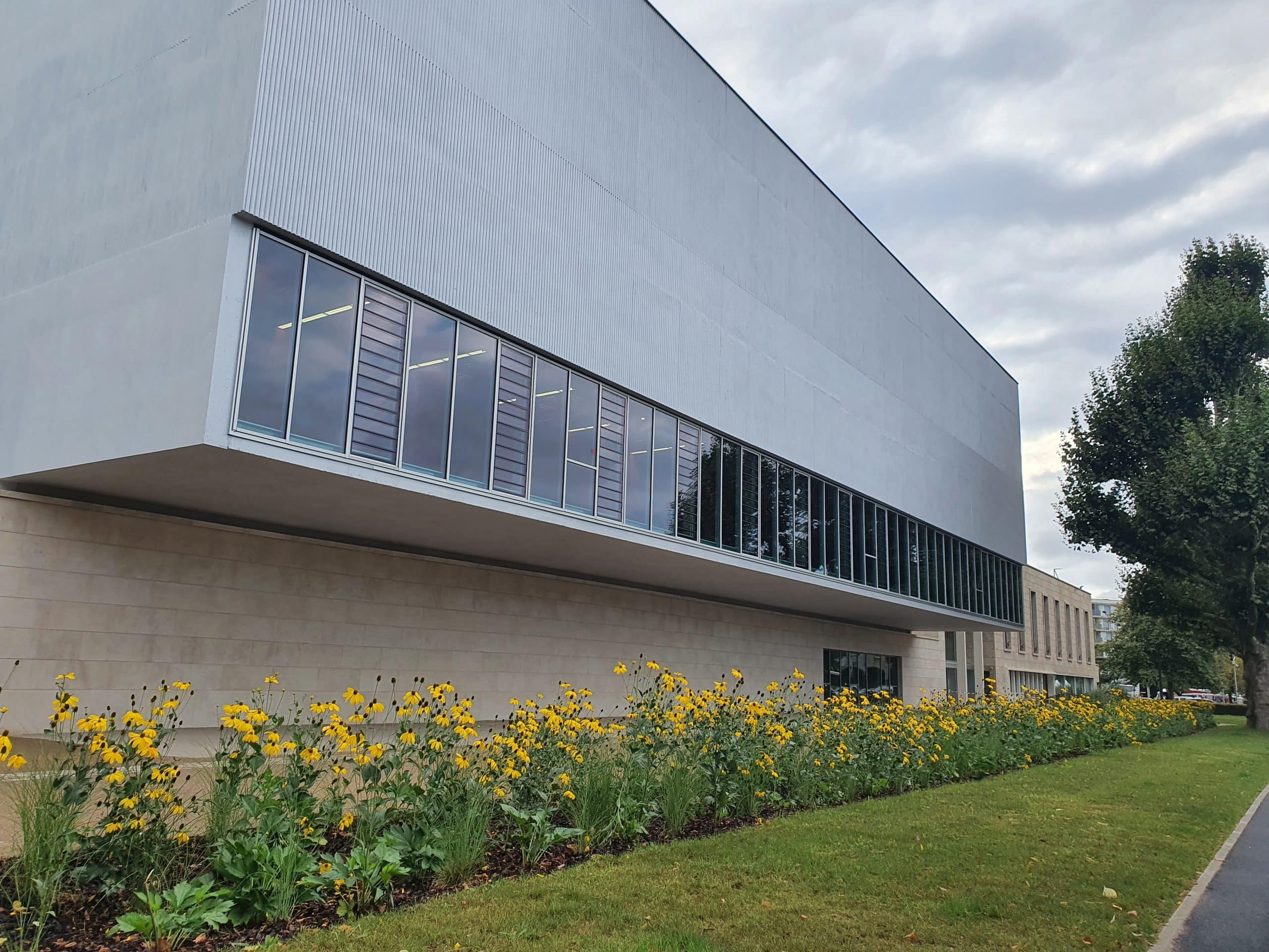 Côté architecture, le projet qui a retenu l’attention des jurés est celui du cabinet Dominique Coulon. « Il a voulu en faire un bâtiment unique, une réponse à Puzzle », confie Pierre Cuny. La connexion conservée avec le théâtre municipal, la conservation de certains éléments de l’ancien gymnase ainsi que l’inversion établie entre la salle Jean Burger initiale et le nouveau gymnase ont convaincu la quarantaine de membres du jury. Mais une fois lancé, le chantier n’a pas été épargné entre Covid et faillites d’entreprises. Au point de n’être finalisé qu’en 2024, soit quatre ans plus tard que prévu.