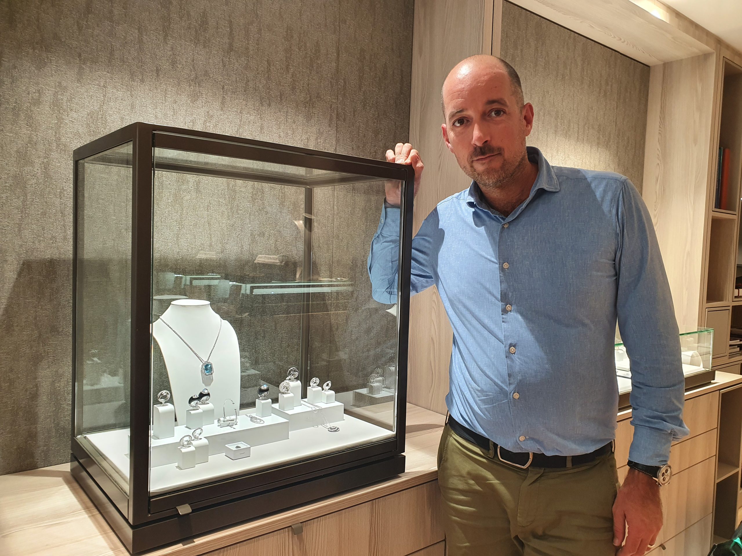 Désormais, l’écolier a bien grandi et a suivi assez naturellement la voie de son père. Il est parti étudier à l’école du Louvre à Paris jusqu’au Brevet des Métiers d’art, puis a travaillé trois ans dans l’atelier pierre unique de Cartier. Après cette expérience très formatrice, il s’est lancé dans la création de sa propre marque de bijoux : Tom G. Pourquoi a-t-il choisi de suivre les traces familiales ? Lui-même ne le sait pas trop. « J’adore le dessin et je me suis toujours dit que je ferais un métier en lien. J’aurais pu être architecte, j’ai essayé joaillier et c’était foutu ! », glisse-t-il en esquissant cette fois… un sourire. L’homme ne résiste pas à la tentation de nous montrer le résultat de cette passion qui l’anime depuis ses tendres années. Il nous fait découvrir, en premier lieu, un bar à diamant. Chacun est positionné en fonction de sa valeur. On monte ainsi crescendo jusqu’à plusieurs carats. Puis, il nous fait voir l’une de ses pièces les plus précieuses, façonnée autour d’une pierre aigue-marine. « Quand une pierre est si majestueuse, on dessine le bijou pour elle », explique Tom Gérard, qui ne se lasse pas de regarder cette parure avec des yeux d’enfant. La plupart du temps, il opère tout de même la mécanique inverse et détermine la pierre en fonction du graphisme du bijou pensé préalablement. Ceci fait, un prototype est réalisé en 3D pour une présentation aux clients avant de créer le bijou. « Pas loin de 150 pièces – la plupart sur mesure – sont produites chaque année », précise-t-il. Des commandes conçues au sein de son atelier de joaillerie. Un second verra bientôt le jour avec l’arrivée d’un horloger professionnel.