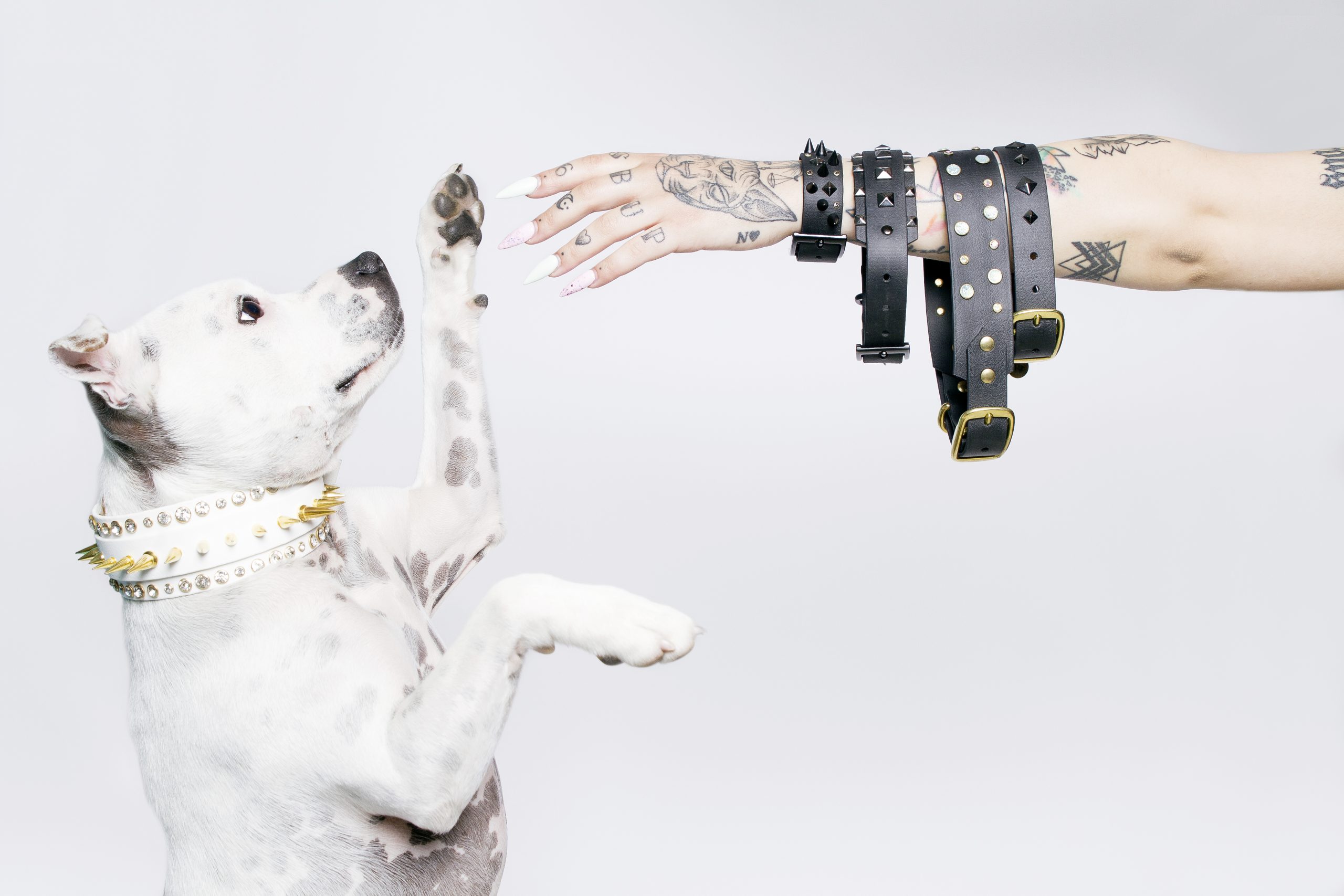 À l’arrivée, la mode pour animaux selon Tiphaine reprend les mêmes codes que celle pour femme ou homme d’aujourd’hui, avec une forte présence photo et vidéo sur les réseaux sociaux. Un récent clip sur YouTube fait poser Harley et trois autres chiens en compagnie de leurs maîtres devant des monuments parisiens, sur fond de guitare saturée, colliers cloutés, ambiance rock garantie. Récemment, la consécration est venue d’outre-Atlantique avec deux pages pleines dans le magazine « Dogue », version animale de « Vogue », pour une édition spéciale mariage (car oui, on peut aussi assortir son chien à sa robe de mariée). Opération réussie pour Tiphaine Costel Goncalves qui, en trois ans seulement, aura réussi à imprimer sa patte dans le créneau du luxe d’un marché porteur.
