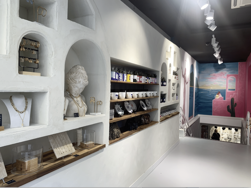 Sur deux niveaux, Mamma Mia propose un premier niveau en forme d’élégant showroom, tandis que le sous-sol dévoile une belle collection de bijoux ou de vêtements.