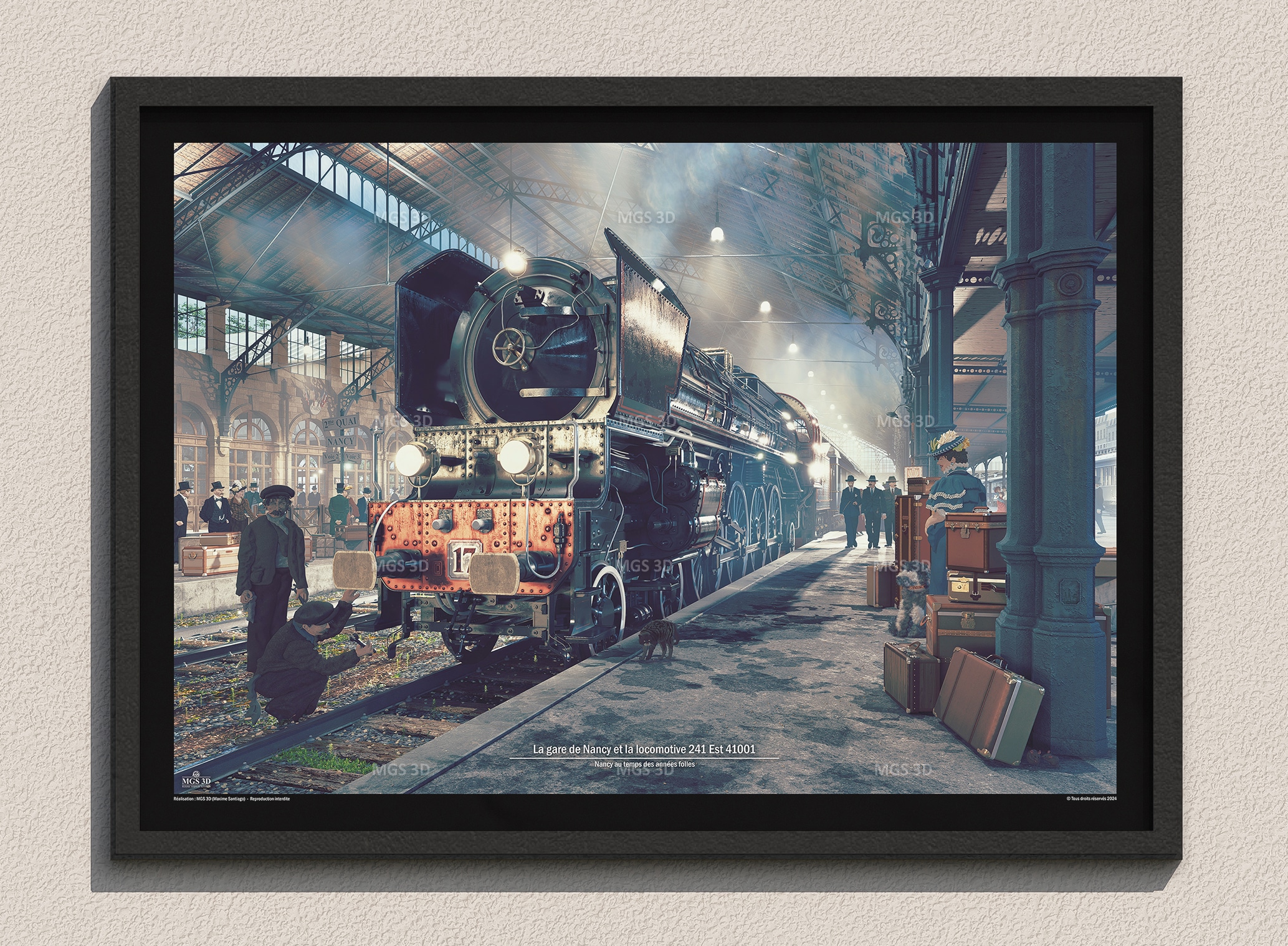 Quand Maxime Santiago évoque ses créations, son œil scientifique brille en plus comme celui d’un artiste. Car la recherche historique et la quête de précision ne l’empêchent pas d’apporter sa touche personnelle, son ressenti. C’est la partie la plus compliquée de son travail, car si les plans sont faciles à trouver, le travail des couleurs, des textures imposent une prise de risque : « Des fois j’ai des traces, des témoignages, des aquarelles, des documents d’études qui montrent une ambiance. Mais dans l’ensemble, c’est comme si d’une personne, je n’avais que le bras ou l’avant-bras comme témoignage. Donc pour le reste, c’est de l’interprétation, de l’hypothèse. » Ainsi sur une autre reconstitution, Maxime Santiago représente une locomotive en gare de Nancy en 1925, pendant les années folles.