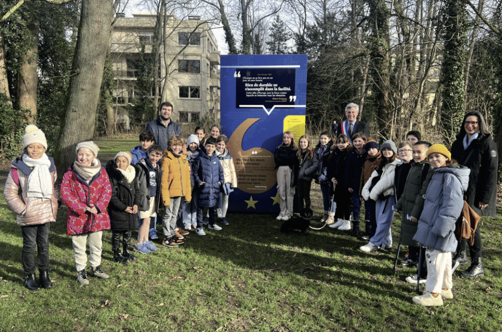 Oser, c’est donc là que le conseil municipal des jeunes (CMJ) de Montigny-lès-Metz puisse sa force. Pour tout dire, la coopération européenne, les petits élus la pratiquent déjà à leur échelle, en collaborant sur certains projets avec des conseils d’enfants luxembourgeois, belges ou même allemands. Mais avec les mots d’Angela Merkel, ancienne chef d’État très impliquée sur la question européenne, c’est tout de suite plus concret. Elle fait partie du totem des personnalités qui louent les bienfaits de l’Europe aux côtés de ses pères fondateurs : Robert Schuman et Konrad Adenauer. Ce « totem des visionnaires » installé au sein du parc Europa-Courcelles.