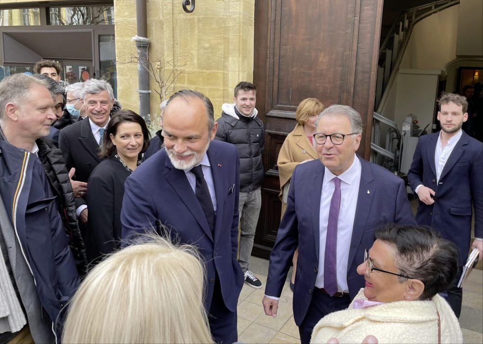 Édouard Philippe accueilli par Pierre Cuny lors de son précédent passage à Thionville, le 12 mars 2022. Photo La SemaineLors de sa conférence de presse dédiée aux vœux, le maire de Thionville a fait quelques confidences sur le choix de son parti en vue des prochaines élections européennes.