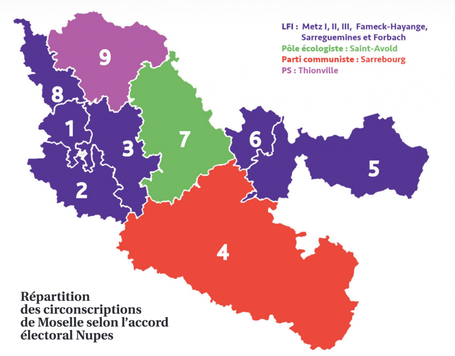 En Meurthe-et-Moselle, la France Insoumise sera tête d’affiche dans trois circonscriptions sur six : Pont-à-Mousson, où Caroline Fiat est députée sortante, mais aussi Briey/Longwy et Nancy I. Le PS parvient à sauver dans l’alliance deux circonscriptions : Toul, avec le sortant Dominique Potier (qui ne souhaite pas de l’étiquette Nupes…), et Nancy II réservée au maire de Vandœuvre, Stéphane Hablot. Le Pôle écologiste hérite de Lunéville. Tandis que les communistes font chou blanc puisque Nupes ne leur réserve aucune circonscription dans le département, même dans le Pays-Haut.