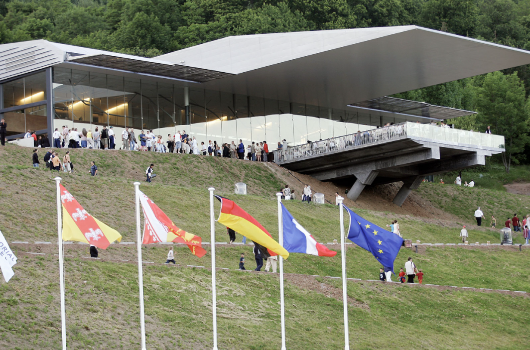 Le bâtiment retenu, une masse minérale, monolithique, avec une toiture aux extrémités saillantes, s’ancrera en contrebas du Mémorial Alsace-Moselle, un musée historique inauguré en 2005, et qui avant la pandémie accueillait 50 000 visiteurs par an.