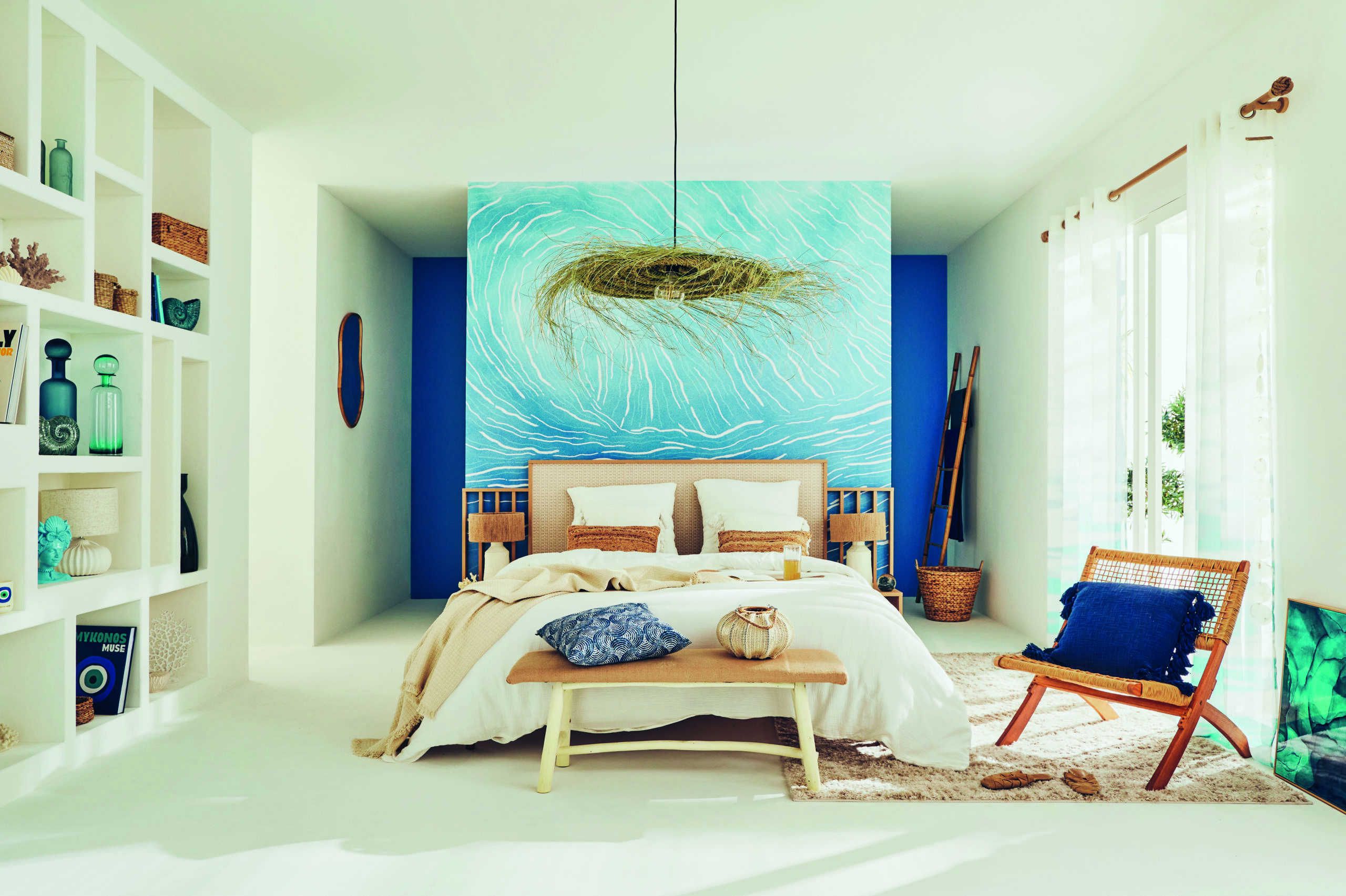 « On mise sur du mobilier, des textiles et accessoires en matériaux naturels tels que le jonc, la paille et le rotin. Et en associant le tout à une palette de couleurs dominée par des tons de bleu, de vert et de blanc, on obtient une ambiance douce et ressourçante. », poursuit Myriam Ambard-Boufatis.