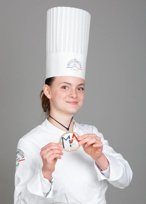 « J’ai réalisé mon rêve en participant à ce concours. J’ai passé trois jours à Paris avec des apprentis venus de toute la France, c’était génial mais il y avait aussi beaucoup de pression car ce concours est vraiment le plus gros dans cette catégorie. J’avais déjà participé en boucherie mais je n’avais pas ramené la médaille, là c’était un peu une revanche. Au début je n’étais pas très emballée par le thème des trois épreuves – nous devions réaliser une galantine de cochon citron-gingembre, un entremets terre et mer, avec sa garniture et sauce froide ainsi qu’une tarte aux chocolats et framboises – et puis l’inspiration est vite venue. Le jury a eu un coup de cœur pour mon entremets et ma tarte au chocolat. »