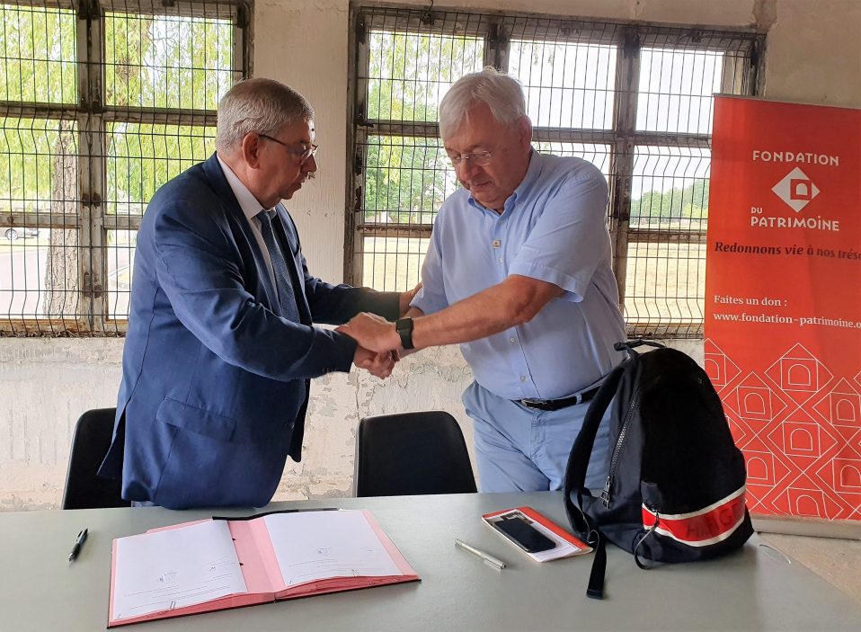 Denis Schaming, délégué régional de la Fondation du patrimoine, et Robert Ahr, président du Syndicat mixte du musée de la Mine, sur le Parc Explor Wendel, ont signé une convention qui s’inscrit dans le cadre d’une campagne d’appel aux dons visant à encourager le mécénat populaire et le mécénat d’entreprise en faveur de la sauvegarde du patrimoine de proximité.