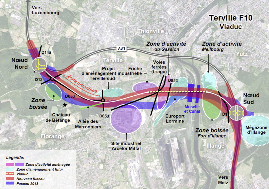 Si à ce stade il n’exprime aucune préférence, Laurent Touvet a tout de même révélé que l’un des tracés était en retrait par rapport aux autres : « Le F10 n’attire pas beaucoup de voix », a-t-il déclaré en marge d’une rencontre avec la presse, le 17 janvier. Le tracé F10 « consiste en la création d’une nouvelle section longue de 8,1 kilomètres, explique le site A31bis.fr. Du sud au nord, le tracé réutilise l’autoroute A31 actuelle jusqu’à l’échangeur de Guénange puis se poursuit par un tracé neuf au sud de Thionville, parallèle au tracé actuel, qui franchit la Moselle au moyen d’un nouveau viaduc long de 1,6 kilomètre. Son coût serait compris entre 380 et 470 millions d’euros. Son impact environnemental est potentiellement important, en particulier sur le milieu naturel (bois et milieux humides). Du point de vue des déplacements, elle présente moins d’atouts que les autres variantes car, proche du tracé actuel, elle offre une moins bonne desserte du territoire. »