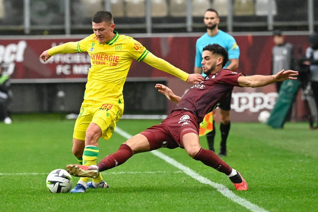 Le FC Nantes de Quentin Merlin (désormais à l(OM) et le FC Metz de Kévin Van den Kerkhof vont devoir batailler pour sauver leur peau en Ligue 1. Photo AFPVainqueurs du match de la peur face à Clermont, les Grenats se sont totalement relancés dans la course au maintien. A neuf journées de la fin de saison, ils sont encore six équipes, en quatre points, du Havre au FC Metz, à se battre pour garder leur place en Ligue 1. Qui a la meilleure dynamique ? Qui présente le pire calendrier ? Tour d’horizon des forces en présence avant le sprint final.