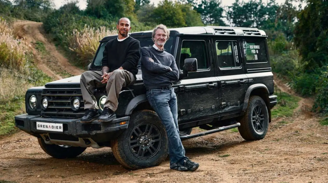 Le pilote de F1 Lewis Hamilton (à g.) et le milliardaire Jim Ratcliffe, propriétaire d’Ineos. Photo DRDans une vidéo, le septuple champion du monde de Formule 1 Lewis Hamilton s’amuse comme un fou au volant du 4×4 Grenadier conçu en Moselle.